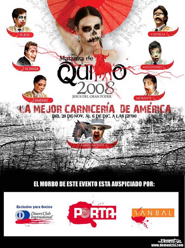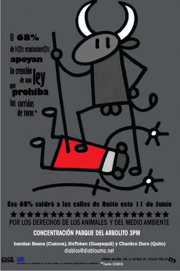 Diabluma, a quienes pidió disculpas por no haber atendido este asunto antes, “quizá por no echarnos encima a la burguesía quiteña”. Dijo entrever un "Ecuador territorio libre de espectáculos anacrónicos y violentos como son las corridas de toros" (video